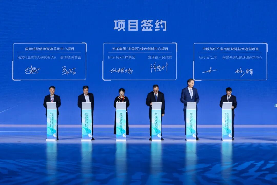 ![]() ![]() ![]() 天祥集团(中国区)绿色创新中心项目、中欧纺织产业链区块链技术追溯项目、国际纺织低碳智造苏州中心项目签约仪式举行;苏豪时尚集团和盛泽镇人民政府进行战略合作签约;盛泽智能家居产品英国海外仓、骆驼(中国)户外用品供应链中心揭牌成立。